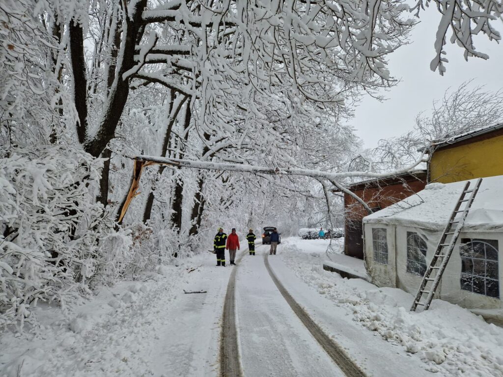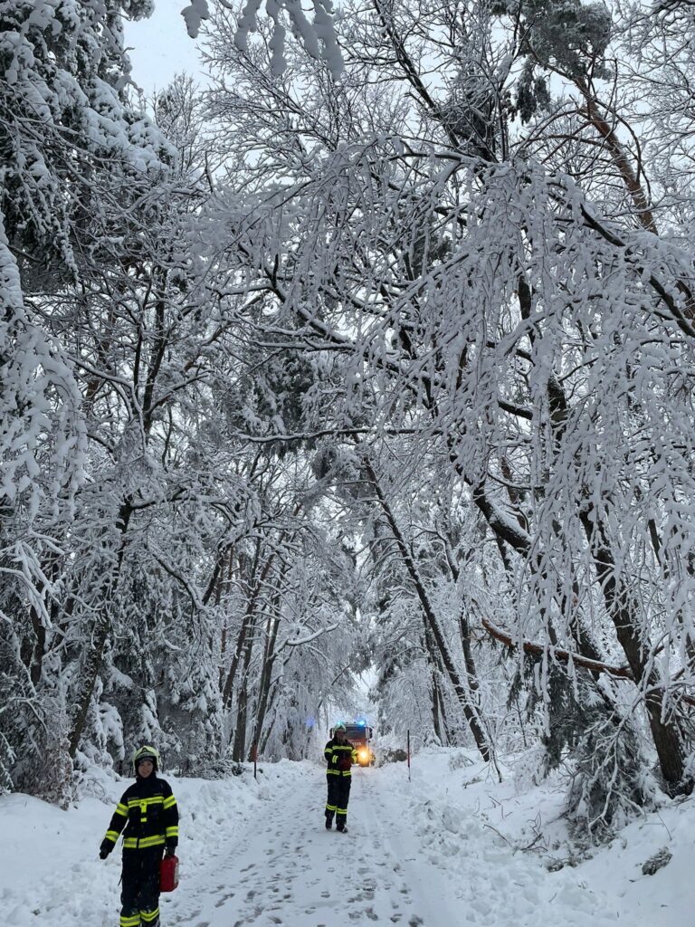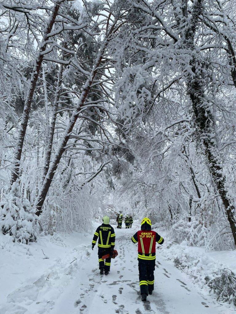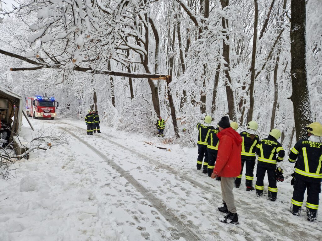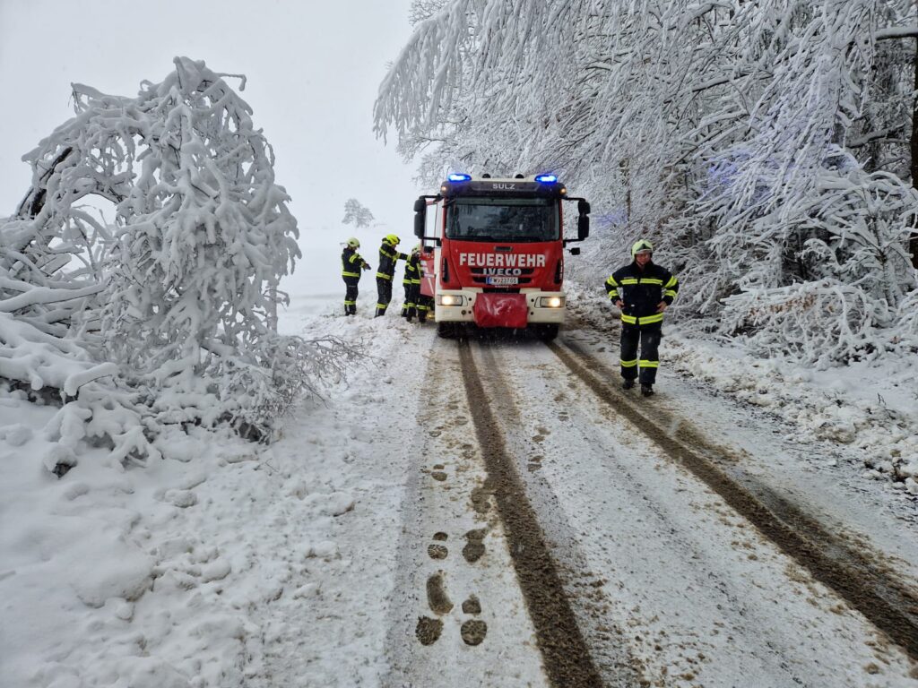 Der heutige Schneefall sorgte nicht nur für eine wunderschöne Winterlandschaft, sondern leider auch für mehrere Einsätze für die FF Sulz. Durch die enorme Schneelast stürzten an mehreren Stellen Bäume um und blockierten Verkehrswege, teilweise auch in unmittelbarer Nähe zu Gebäuden.