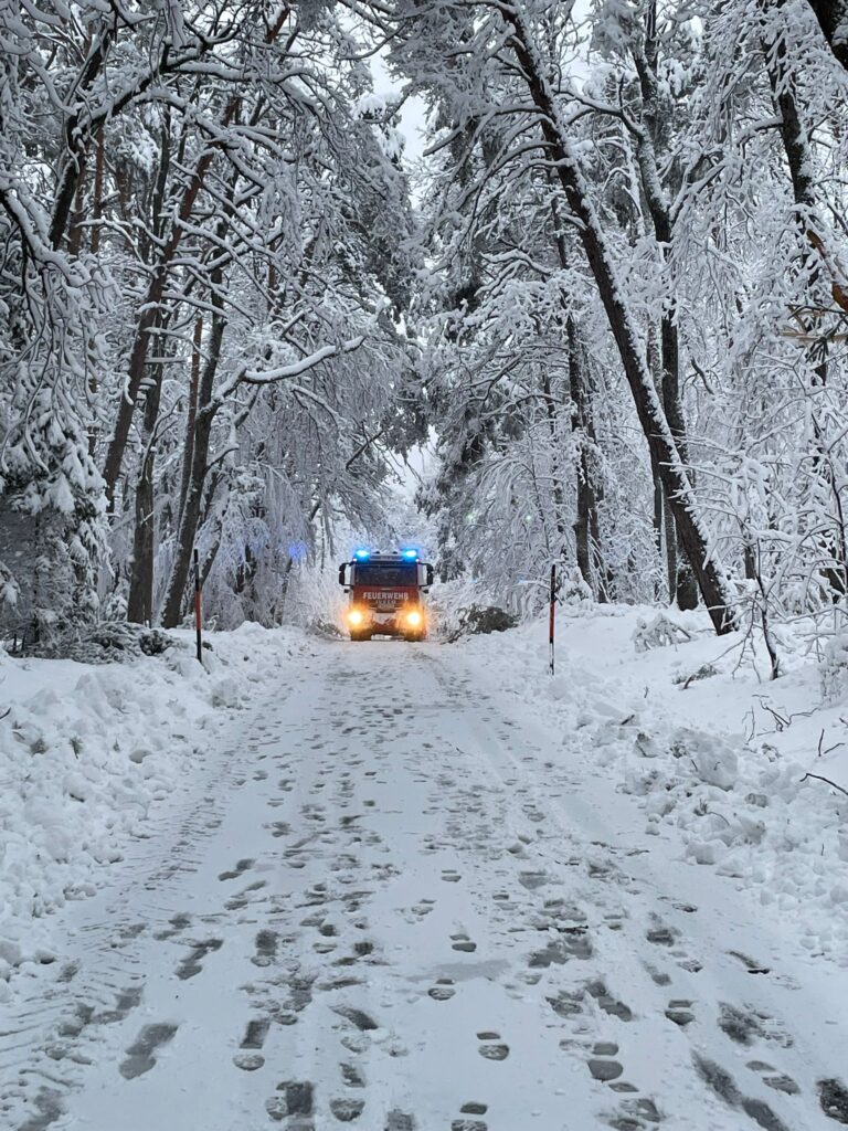 Trotz der herausfordernden Lage herrschte eine beinahe märchenhafte Stimmung, wie in einem Winterwonderland. Der wunderschöne, tief verschneite Wald bot ein beeindruckendes Bild, auch wenn die Schneemassen für viele Bäume letztlich zu schwer wurden.