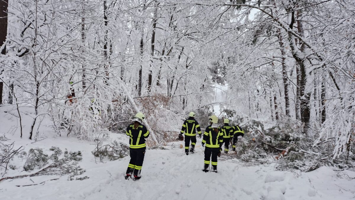 Der heutige Schneefall sorgte nicht nur für eine wunderschöne Winterlandschaft, sondern leider auch für mehrere Einsätze für die FF Sulz. Durch die enorme Schneelast stürzten an mehreren Stellen Bäume um und blockierten Verkehrswege, teilweise auch in unmittelbarer Nähe zu Gebäuden.