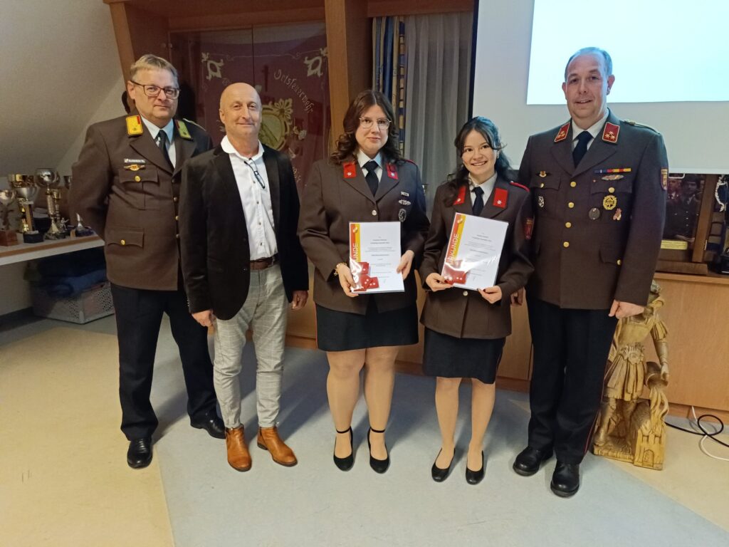 Ein besonderer Programmpunkt war die Verleihung von Auszeichnungen und Beförderungen, mit denen das Engagement und die Leistungen zahlreicher Kameradinnen und Kameraden gewürdigt wurden. Leonie Lang wurde feierlich angelobt und offiziell in den Aktivstand aufgenommen. Ebenso erfreulich war die Aufnahme von drei neuen Mitgliedern in die Feuerwehrjugend, womit die Zukunft unserer Feuerwehr weiter gestärkt wird.
